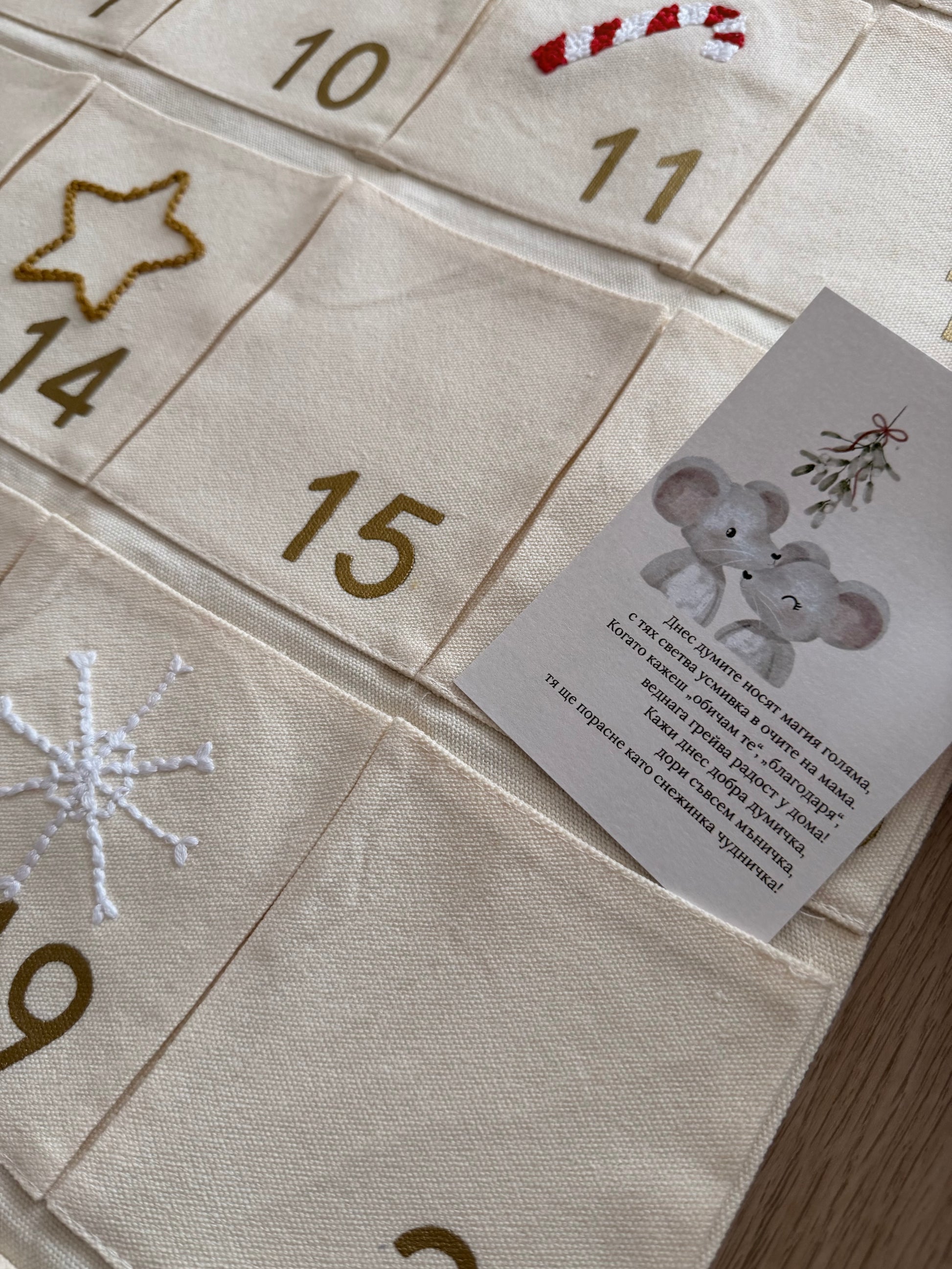 Текстилният адвент календар е създаден, за да съхрани семейните спомени и да се превърне в символ на трепетното очакване на коледната магия, година след година.